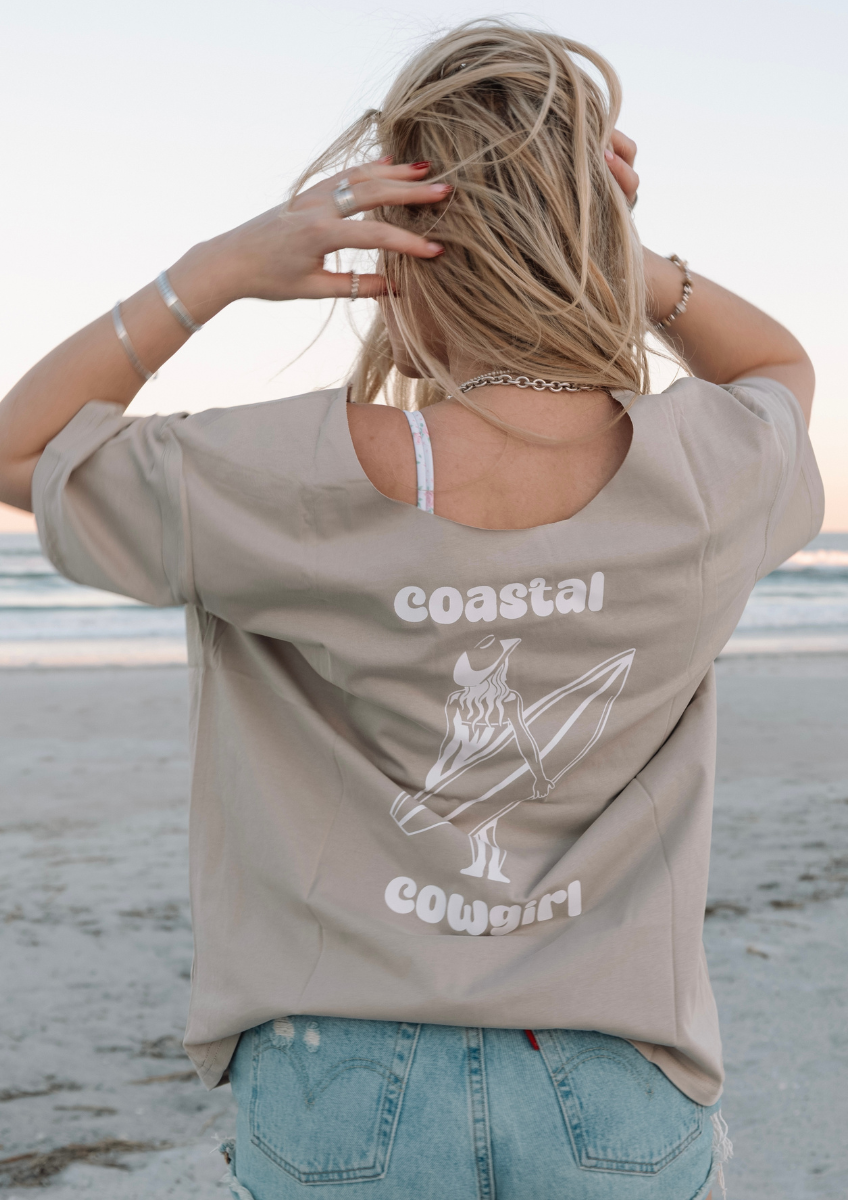 Soft, oversized t-shirt featuring Koba’s Coastal Cowgirl design. Made for slow days, salty hair and that perfectly relaxed, throw-on feel.